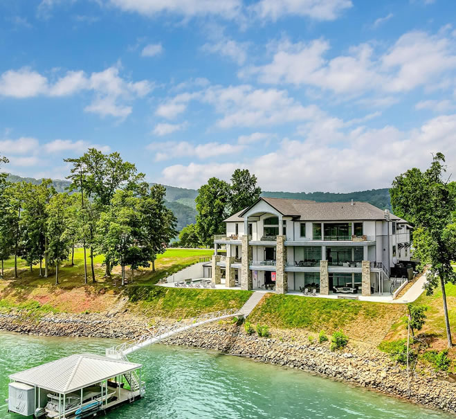 201 Crown Jewel Lane Lafollette, TN - Discover the ultimate luxury living on Norris Lake! This 2022 masterpiece offers pure elegance from this inside and out! Entertain family and friends with direct access to the lake with a private dock and breathtaking views!